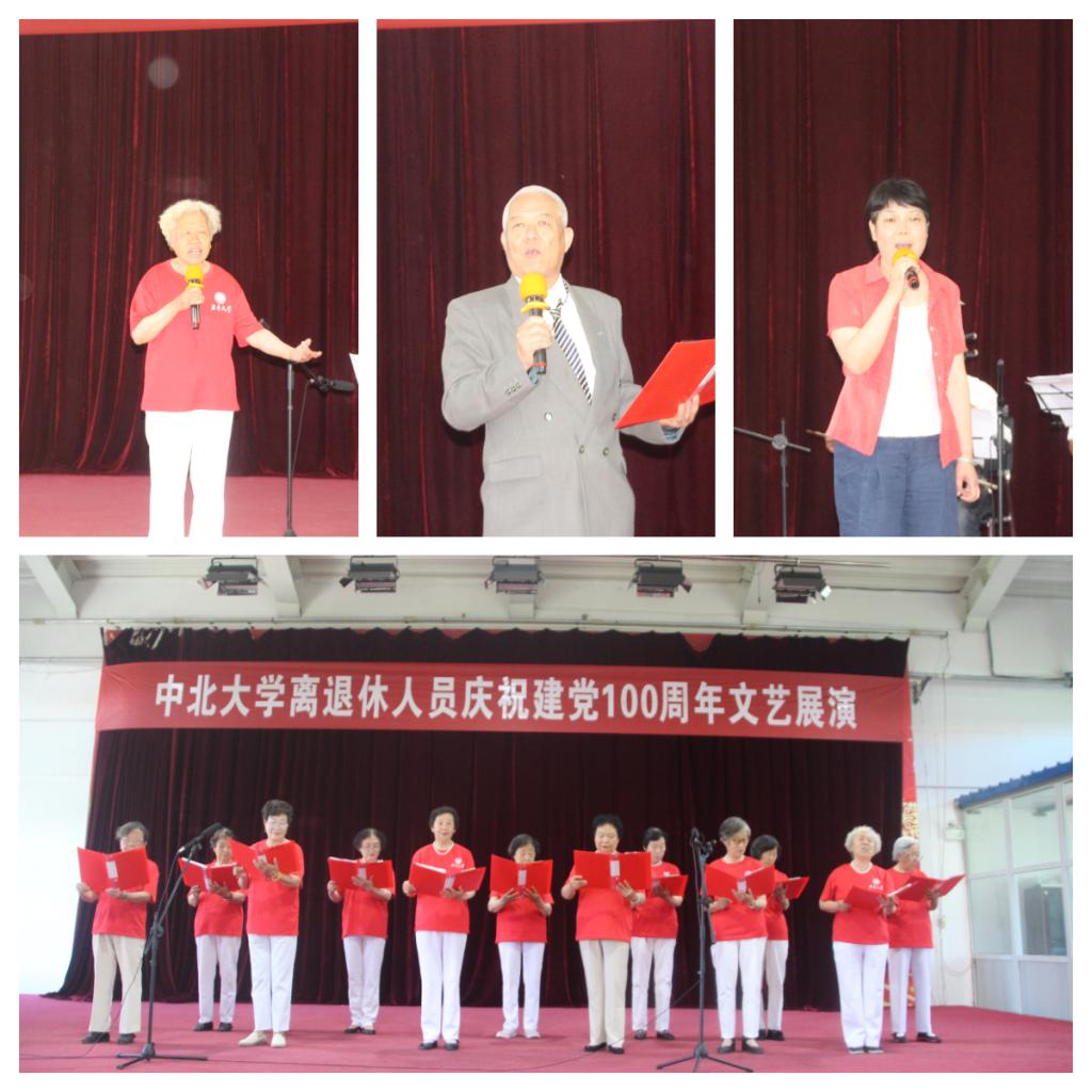 党委书记刘彬在展演前致辞,适逢举国上下欢庆建党100周年和党史学习教育蓬勃开展之季,我们欢聚一堂,载歌载舞,回顾党的光辉历程,歌颂党的伟大功绩,在向为党、为国家和为学校发展做出积极贡献的老党员老同志致以崇高的敬意的同时,希望广大老同志弘扬好太行精神、传承好红色基因,始终与党同心同德、同向同行,珍惜美好新时代,健康快乐度晚年。