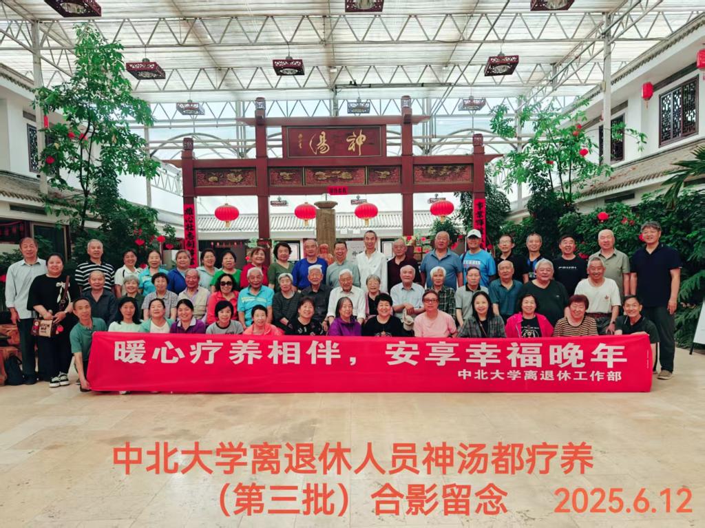 近日,一场满载关怀与温情的康养之旅圆满落下帷幕!离退休工作部精心组织离退休人员开展的忻州神汤都温泉度假疗养活动圆满结束。此次疗养活动,离退休工作部经过充分考察调研,严格遵循招投标程序选定合作方,只为给离退休人员提供最优质、最安心的疗养体验,传递学校对老同志们满满的关爱。
