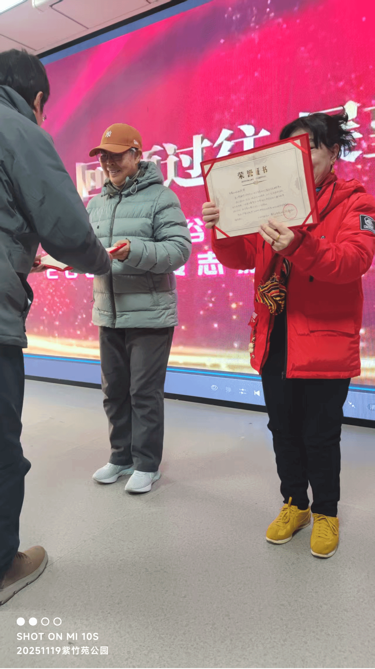 多年来,常住北京的她积极参与社区公益,注册成为北京市志愿者服务队成员。疫情期间,她主动冲在防控一线,承担出入检查、防疫宣传、垃圾分类监督等多项工作,事无巨细尽心尽责。今年12月初,她在社区2025年志愿者服务年终总结会上获颁荣誉证书,被评价为“有长辈的智慧和师者的胸怀”。