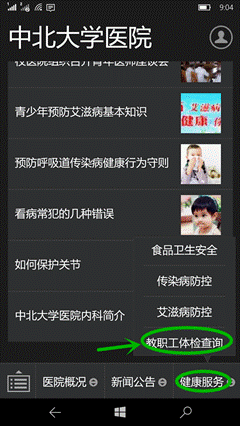 中北大学教职工体检报告手机在线查询使用说明