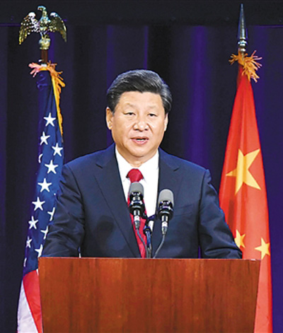 2015年9月22日,习近平出席华盛顿州当地政府和美国友好团体联合欢迎宴会并发表演讲。新华社记者 李 涛摄
