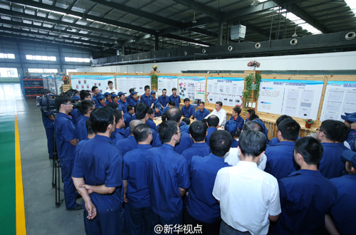 在长春轨道客车股份有限公司总装车间,接线班工人姚智慧流利地说出一大串工艺流程。总书记称赞说:“这个‘工序一口清’很厉害。”姚智慧告诉总书记,每列动车有19726根线束,近10万个接线点,必须将工艺流程倒背如流,才能保证高质量完成每道工序。