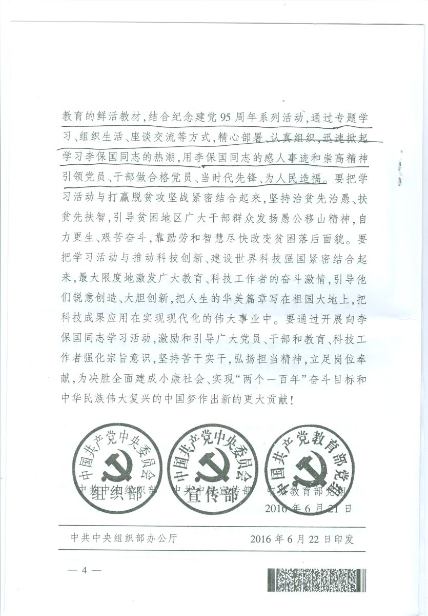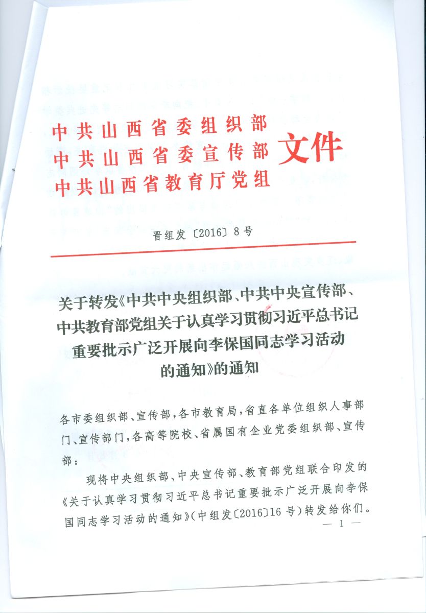 附:关于转发《中共中央组织部、中共中央宣传部、中共教育部党组关于认真学习贯彻习近平总书记重要批示广泛开展向李保国同志学习活动的通知》的通知(晋组发﹝2016﹞8号)