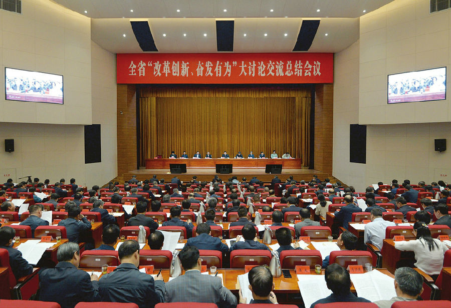 图为全省“改革创新、奋发有为”大讨论交流总结会议会场。 本报记者李联军摄
