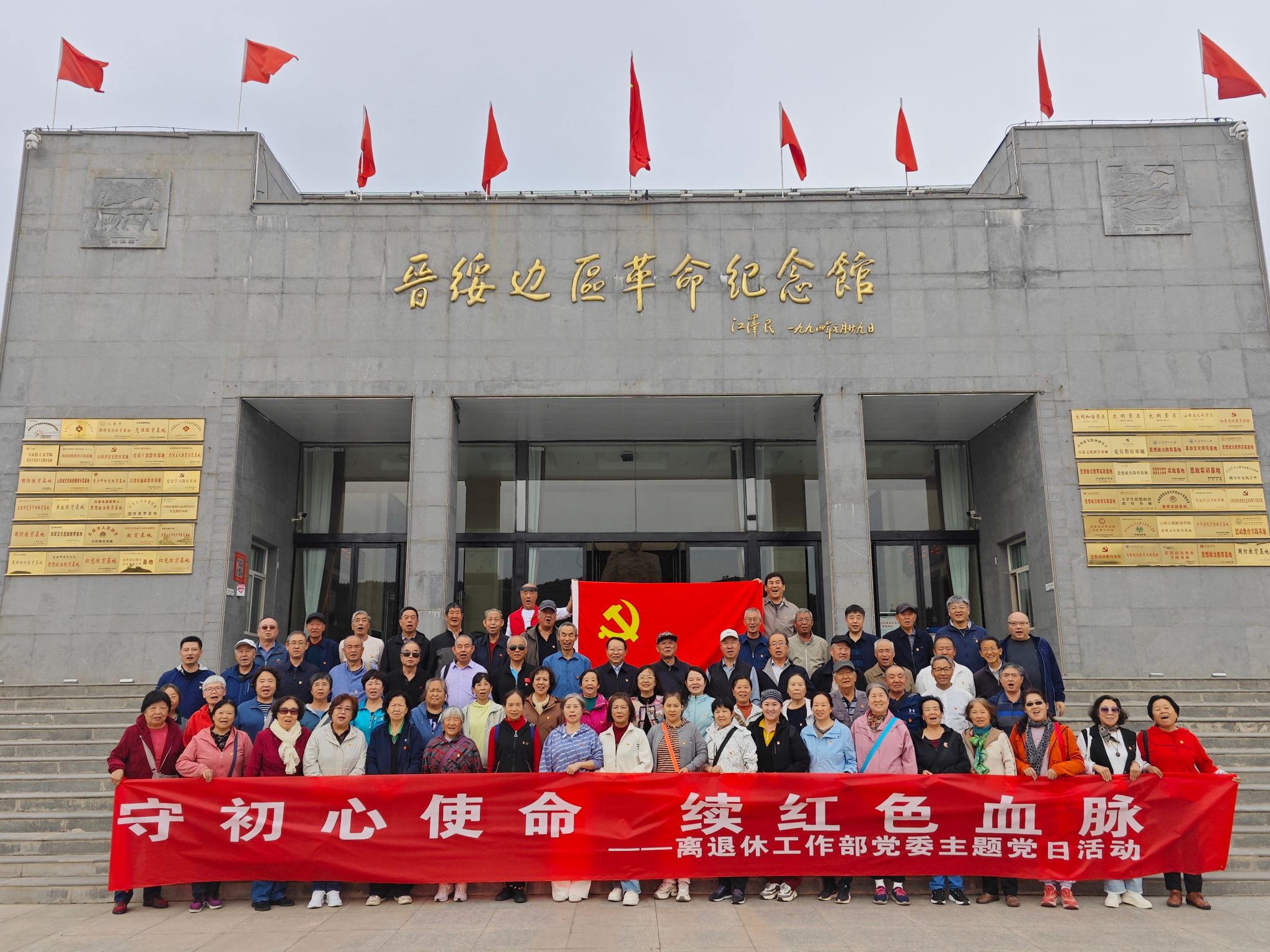 为纪念抗日战争暨世界反法西斯战争胜利80周年,深入学习贯彻习近平总书记重要讲话精神,坚定党员理想信念,凝聚推动学校“双一流”建设的力量,离退休工作部党委于2025年9月28日至29日,组织近70名党员赴兴县蔡家崖晋绥边区革命纪念馆、娄烦县高君宇故居纪念馆,开展“踏英雄土地,守初心使命,续红色血脉”主题红色教育党日活动。
