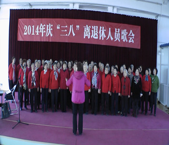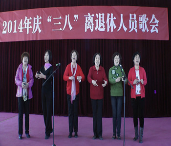 庆“三·八”联欢歌会在《马年说马联唱》中拉开帷幕,在近两个小时的活动中,退休女同志表演了联唱、小合唱、表演唱、歌伴舞等节目。老同志个个精神饱满,认真专注、诙谐幽默,整个活动场所洋溢着热烈、和谐、温馨的气氛。尤其任岳江、王久芳老师的表演唱《夫妻双双把家还》更是把歌会推向了高潮,使台上台下成为一个互动的空间,笑声连连,掌声不断,最后联欢活动在大合唱《再铸辉煌》中落下帷幕。会后有兴致的老同志又在一起唱起了卡拉OK, 大家在欢声笑语中度过了一个温馨愉快的节日。