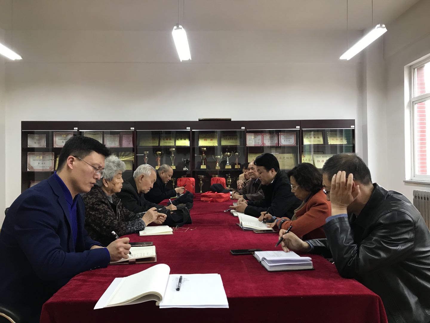 11月16日下午,离退休人员管理处党委在老年活动中心二层关工委办公室召开党委委员和科级干部参加的学习十九届五中全会党委中心组理论学习会。党委书记刘彬主持会议。