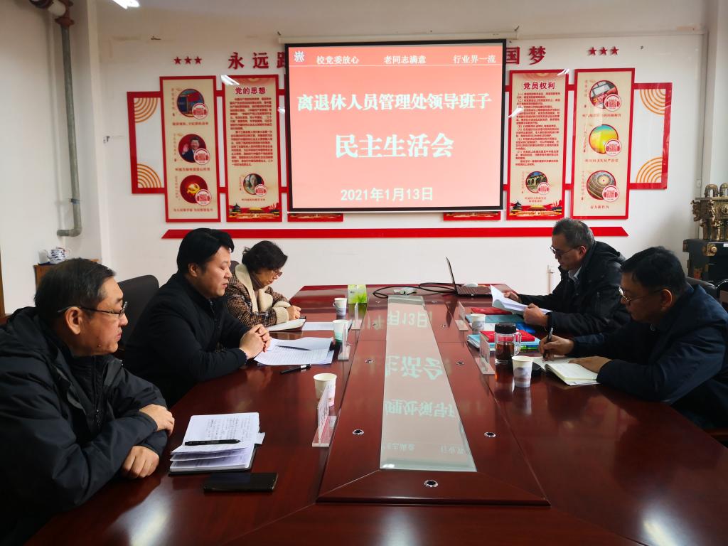 2021年1月13日上午,离退休人员管理处领导班子在老年活动中心一层会议室召开民主生活会,副校长赵贵哲和纪委委员石薛桥莅临指导,会议由离退休人员管理处党委书记刘彬主持。
