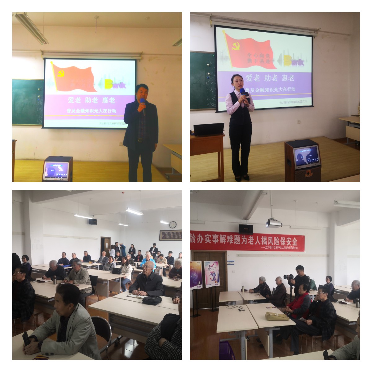 为进一步提高我校离退休教职工的安全防范意识和网银使用能力,有效预防老年人被诈骗案件的发生,4月27日下午, 离退休人员管理处特邀光大银行太原分行解放南路支行大堂经理霍文婷走进中北大学老年大学,为老同志带来 “提防诈骗、安全夕阳”老年人防诈骗金融讲座。