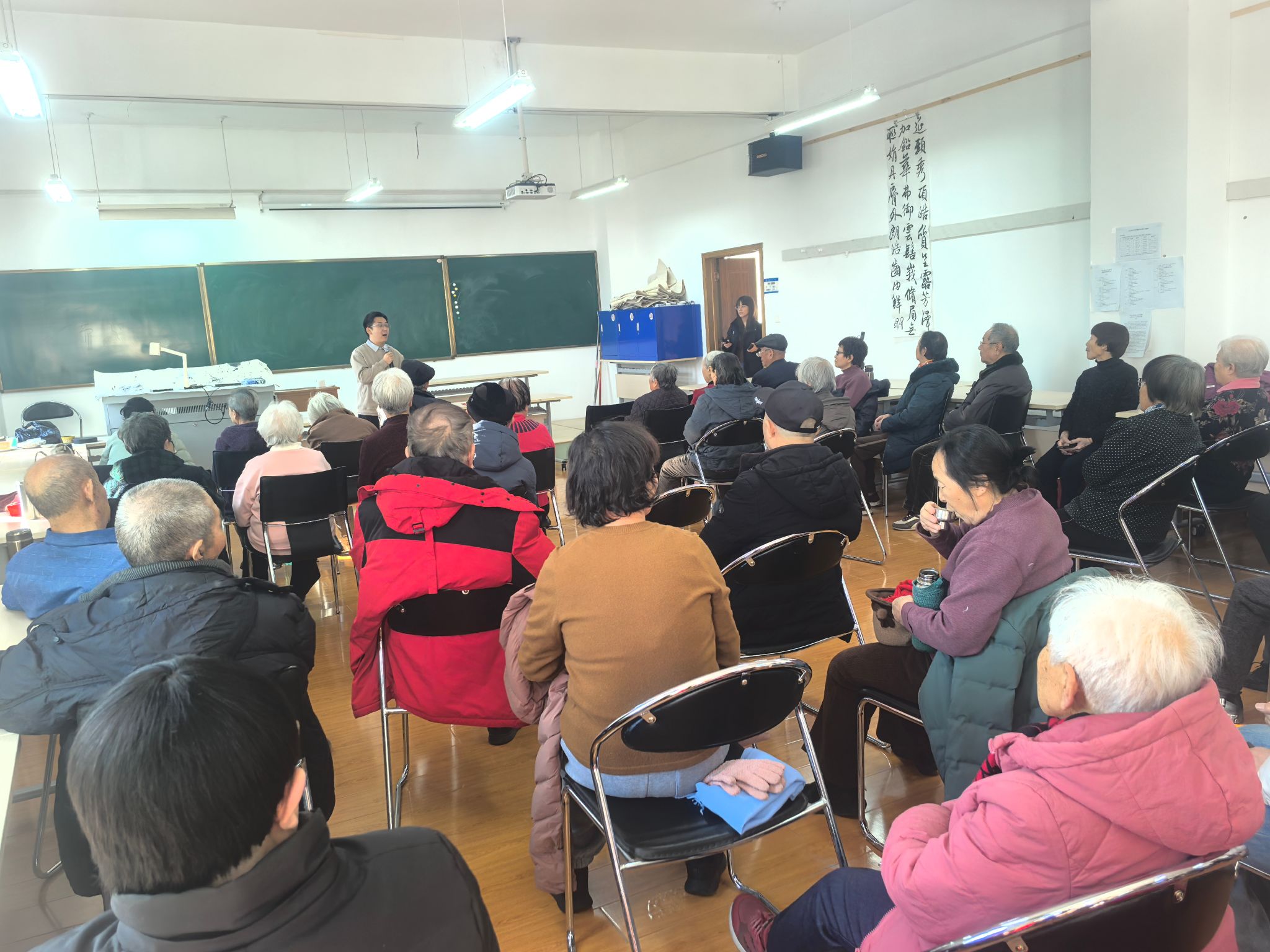 为切实关爱离退休老同志的身心健康,普及科学的养生保健知识,1月19日下午,离退休工作部在老年活动中心二层大教室举办健康专题讲座,特邀王睿智先生以“脑科学下的老年人肩颈腰腿保养”为主题展开分享,众多老同志踊跃参与,现场氛围热烈。