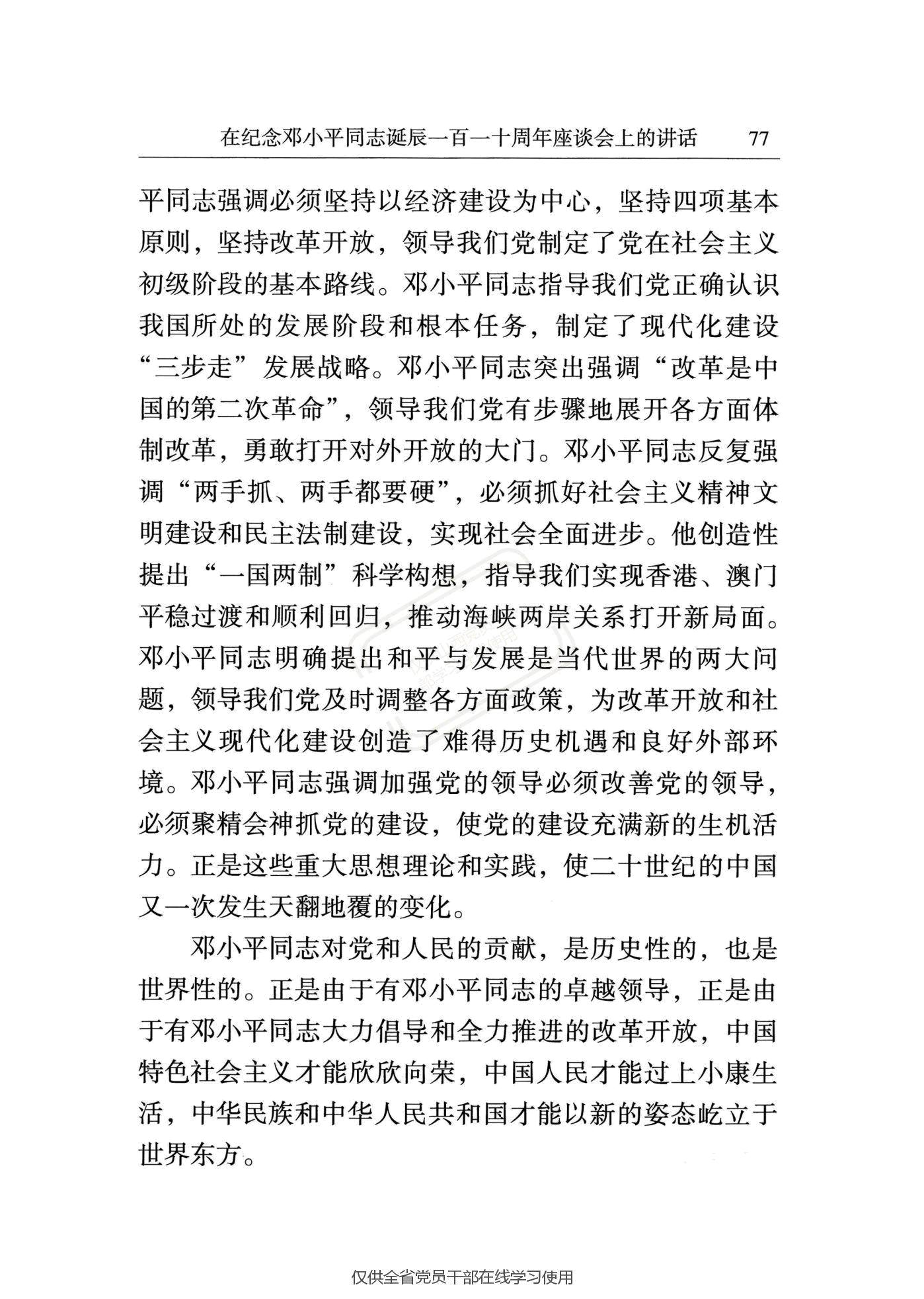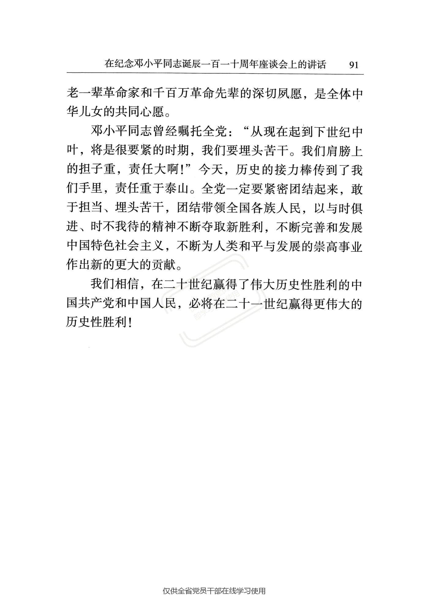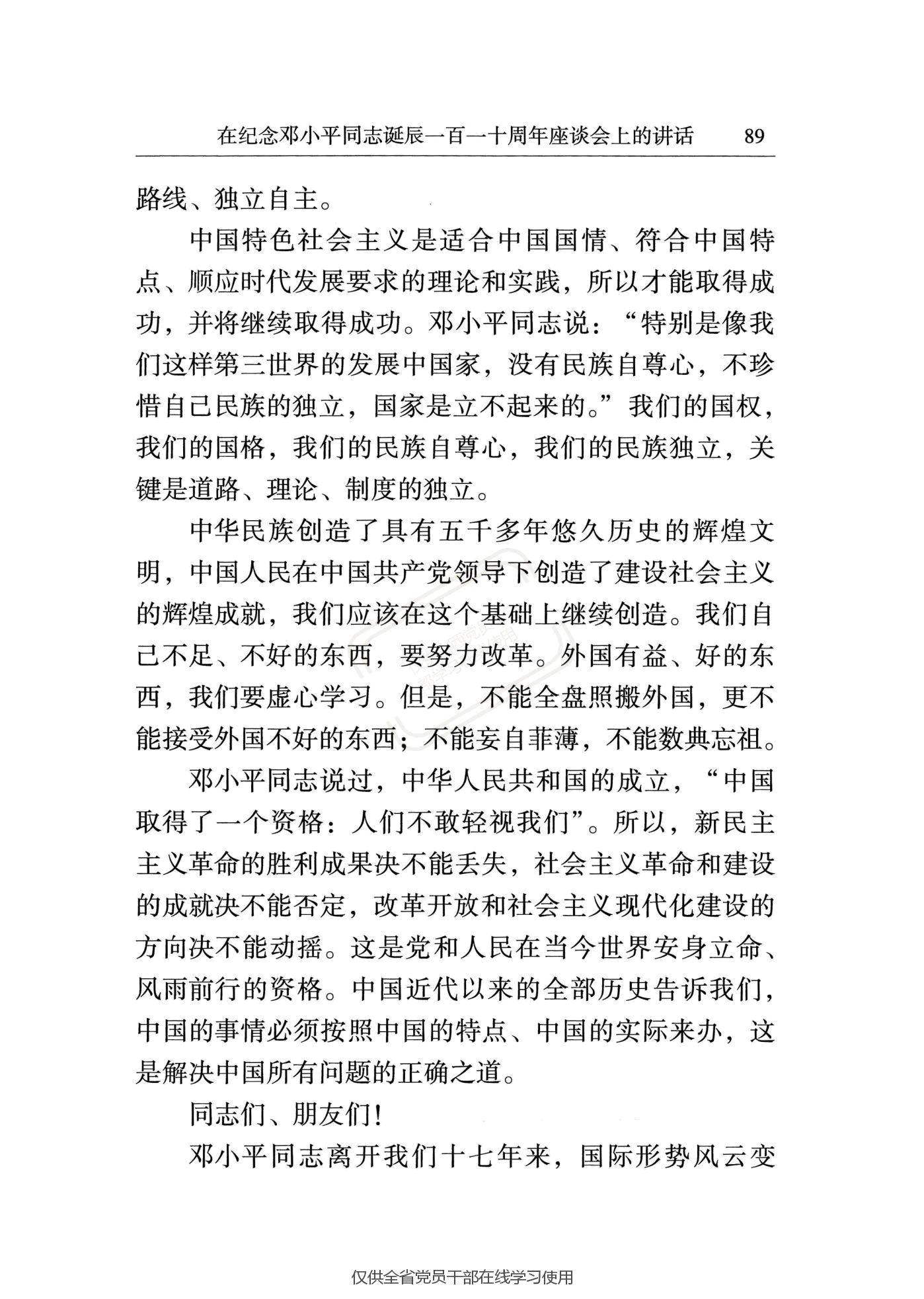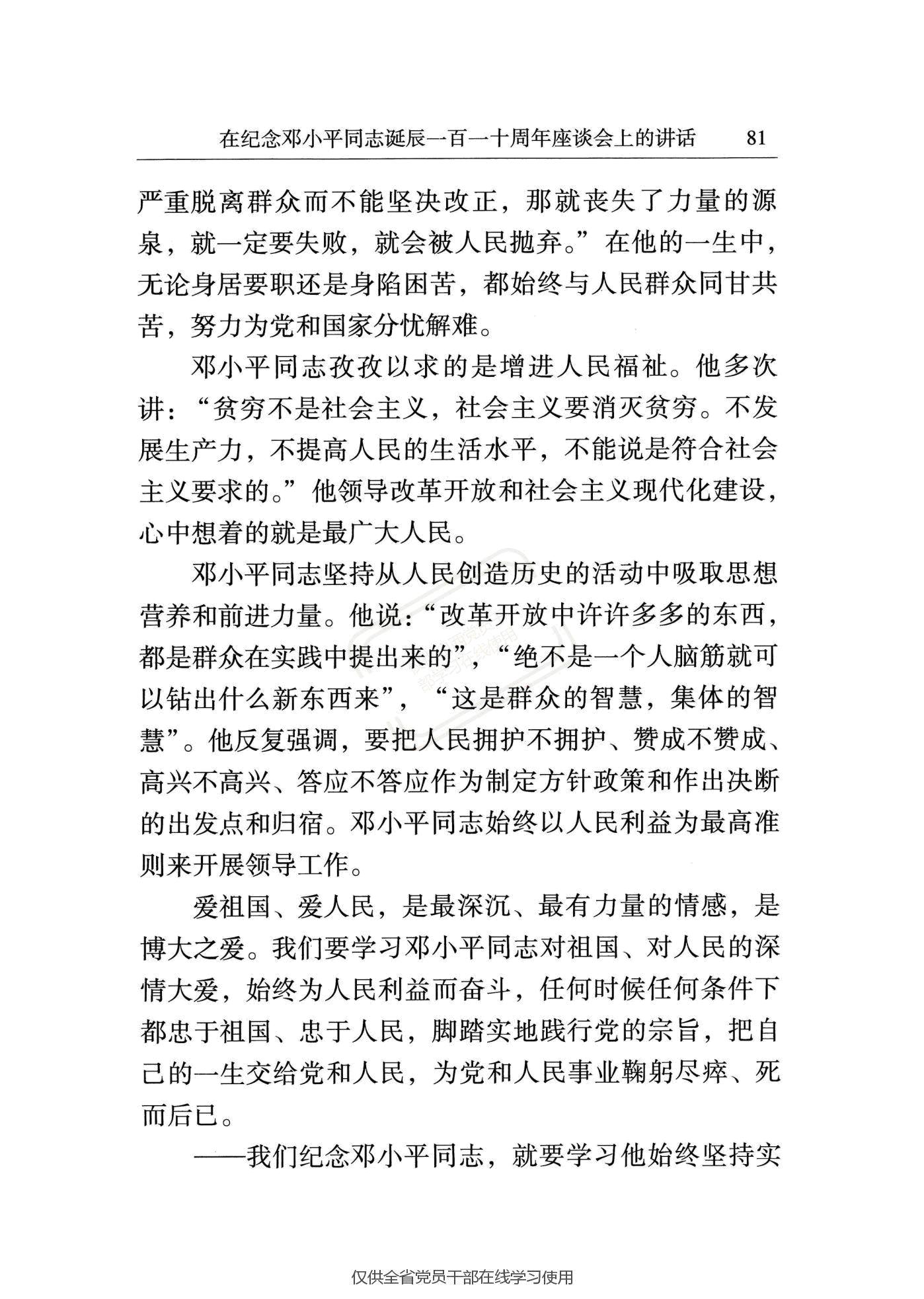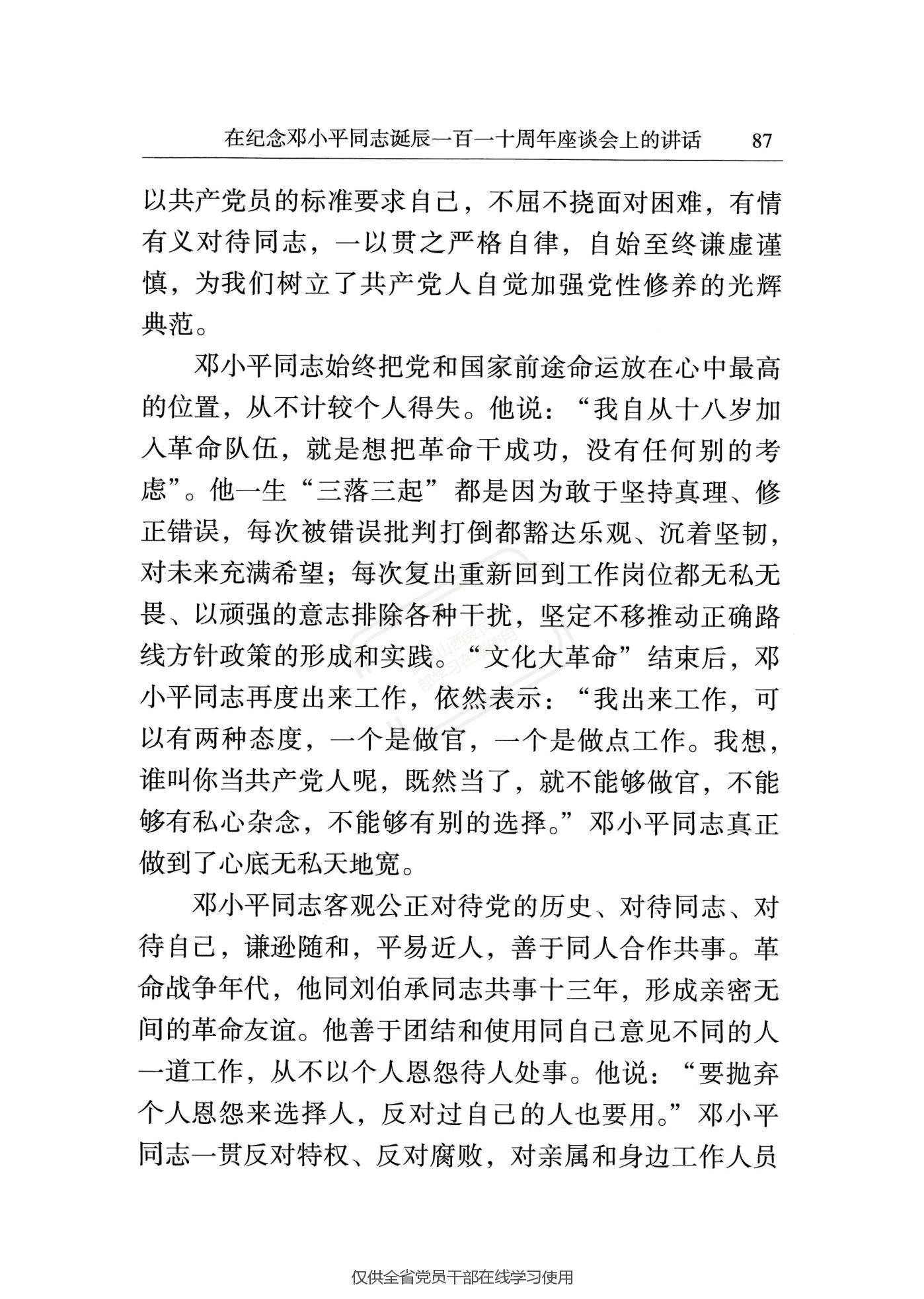 在纪念邓小平同志诞辰一百一十周年座谈会上的讲话